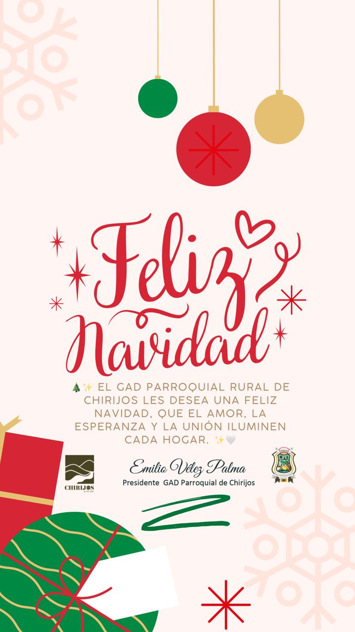 El GAD Parroquial Rural de Chirijos les desea una Feliz Navidad.